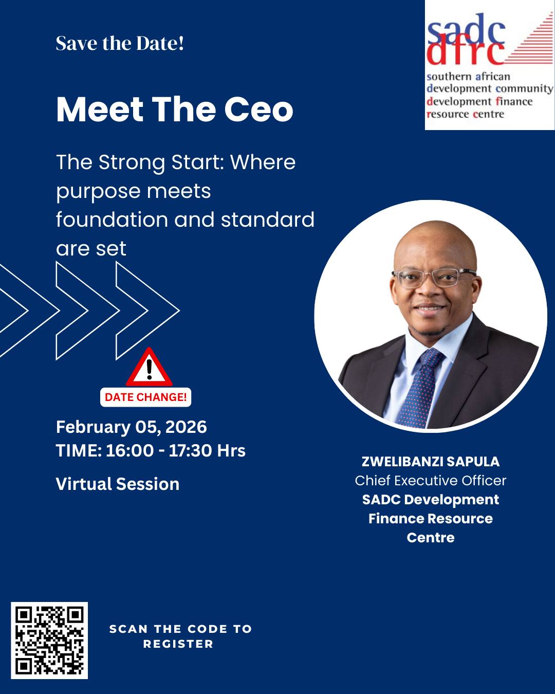 The SADC Development Finance Resource Centre (SADC-DFRC) is once again calling on young professionals ready to sharpen their leadership journey and career path to join our “Meet the CEO” session on 05 February 2026, from 17:30–19:30. Theme: The Strong Start: Where Purpose Meets Foundation and Standards Are Met This free virtual session, led by Mr […]
