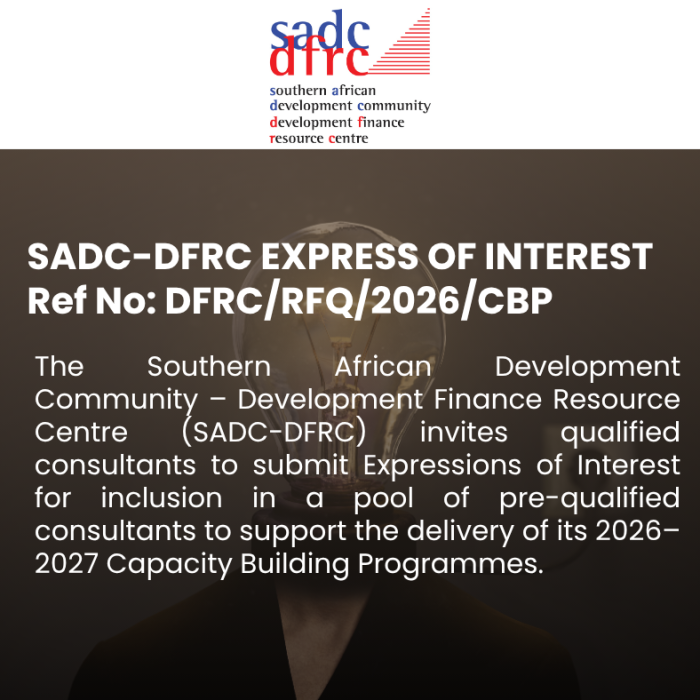 Requirements vary by tender category but generally include relevant company registration, proven experience in similar assignments, financial stability, and regional capability in Southern Africa.
